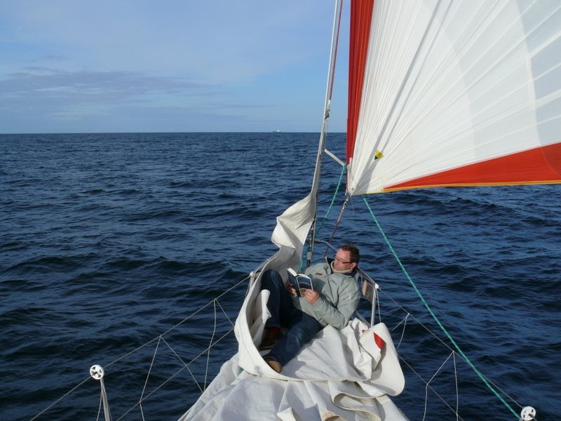 Samstag, 17. Mai 2008 Nach der Skagen Regatta kam am Freitag, den 16.5. in Kiel die neue Crew und der Reparaturtrupp an Bord. Die gerade neue Lichtmaschine war wegen eines Einbaufehlers wieder kaputt und wurde gewechselt, Knierim machte noch Bootsbauerarbeiten und der Tischler lackierte noch Reststellen. Eine wahre Baustelle und dabei Crewwechsel und einproviantieren. Aber Ihr kennt das ja alle selber, wie das dann an Bord ist. Um 14:00 ging es dann los, aber am Kielturm lud die neue Lichtmaschine schon wieder nicht. Also wieder zurück. Der Volvo Mann war noch im Hafen und wieder wurde gewerkelt und gemessen. Endlich war es dann um 16:00 soweit und wir liefen nun zum zweiten Male aus. Der wenige Wind war nun ganz weg und bis zur Kadetten-Rinne wurde motort. Dann setzte sich ein herrlicher NW durch und am Kap Arkona vorbei segeln wir nun Richtung Bornholm mit 9 Knoten und einem geraden Schiff. Die ersten Spiegeleier zum Frühstück brutzeln in der Pfanne.
