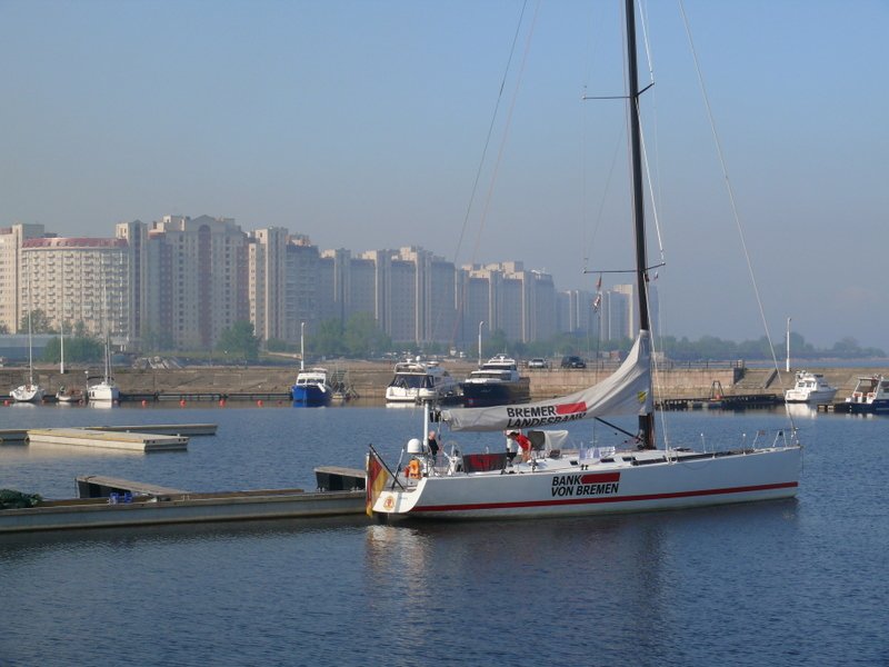 Mittwoch, 21. Mai 2008 Nun sind wir endlich da. Seit gestern 23:00 liegen wir im St. Petersburg River Yacht Club am Steg. Doch bis dahin war es eine abenteuerliche Fahrt. Mittags wurden wir auf hoher See von einem Russischen Boot der Küstenwache kontrolliert und inspiziert. Zwei Mann setzten mit einem Schlauchboot über. Die übliche Kontrollstelle in Kronstadt war nicht besetzt. Ganz langsam mussten wir die schmale Einfahrt zur Stadt durchfahren, um dann in das Fahrwasser zum Yachtclub abzubiegen. Ganz langsam ohne Lotsen tasteten wir uns über 3,8 M Wasser bei Nacht in einem kleinen Fluss zum Yachtclub durch, wo wir jetzt liegen. Die Stadtführerin ist für 10:00 bestellt. Am Freitagmorgen wollen wir dann wieder nach Tallinn zurück. Ich werde dann wieder berichten.